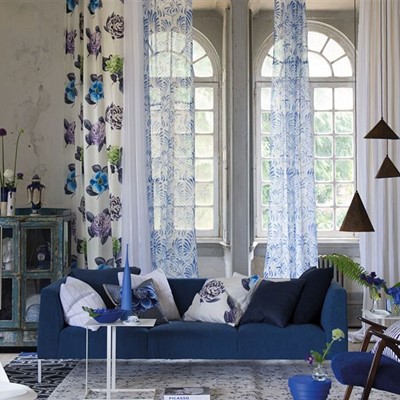 Designers Guilds härligt glada färger och breda stil sträcker sig från klassiska ränder till bedğrande blomstertryck, geometriska mönster och livfulla barnkollektioner som inkluderar hela färgpaletten.
